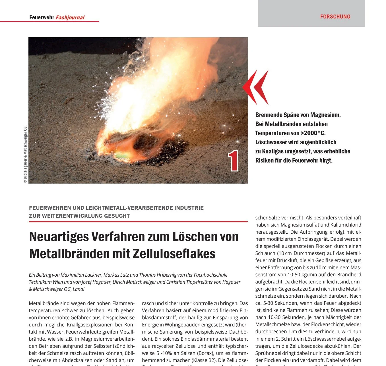 Wir sind ein Startup aus der Obersteiermark mit Lösungen zur innovativen Lösung zur Bekämpfung gefährlicher Metallbrände. Mit einer “zündenden” Idee von Josef Hagauer fing 2018 alles an - und gefördert durch ein FFG-Forschungsprogramm haben wir die Idee bis zum Frühjahr 2022 zur erfolgreichen Lösung entwickeln.